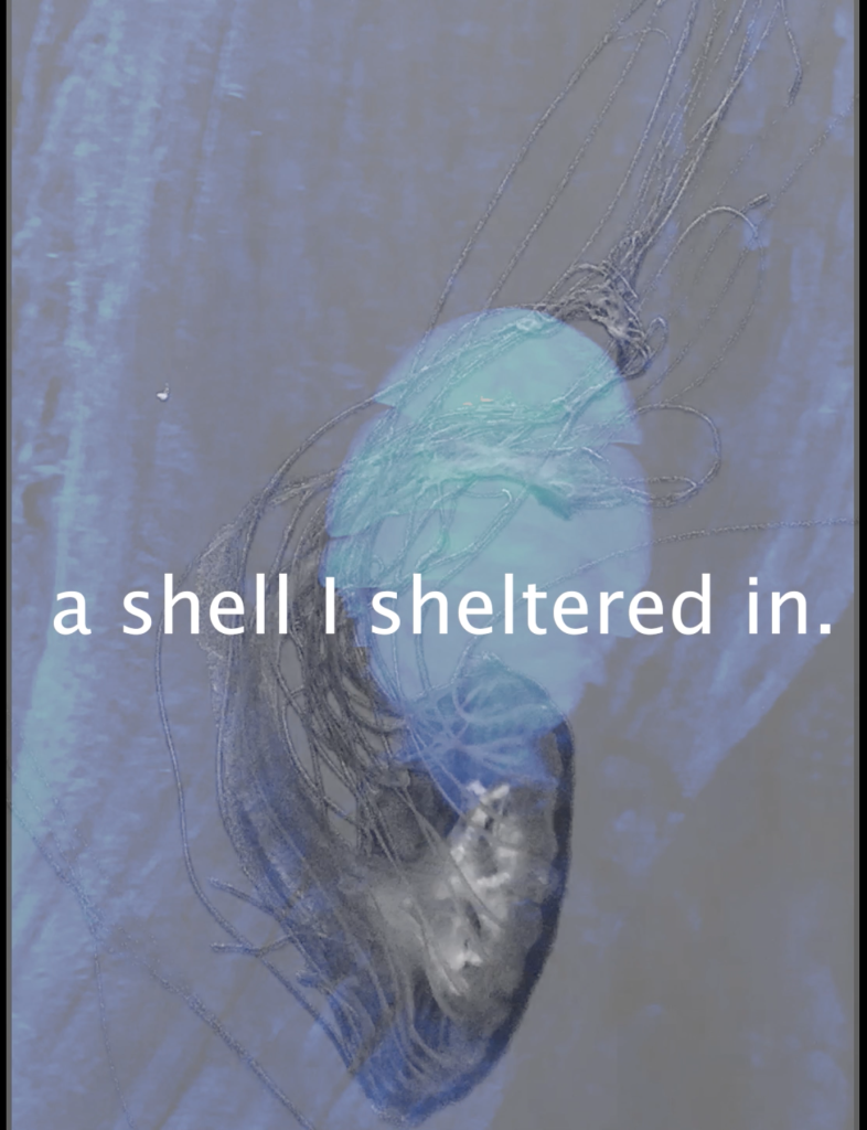 Presented below is my first video work that I have made that seeks to explore Medusa as a symbol of power and the ‘female gaze’ using my dramatic monologue piece as a base for the work. screenshots of the video can be found beneath the video itself. I found my use of natural imagery I’ve filmed myself was strong in establishing a magical aspect within the work, embracing video as a medium that can depict the fantastical. Editing the footage has proven to be an effective tool when dealing with mythical motifs that encompasses natural elements- such as the sea imagery in connection with Poseidon and the snake imagery in connection with Medusa. The added iPhone frame works not just as a phone, but also as a doorway and a void, an idea that is expanded upon in my following works. I play Medusa within the piece as well as within the following video works I have made. In doing this, I hope to humanise her as a character, while also experimenting with my own concept of empowering myself as a performer. I experimented in this work with concealing Medusa’s eyes whilst she speaks the lines of the poem. While I had hoped this would make the concept of her gaze more intimidating and therefore more powerful, I have found this instead restricts her power as a subjective speaker, – something which I have changed in the works that follow this one. My speaking the lines of the dramatic monologue directly also appeared to tie the story of Medusa too directly to me as a performer. This led me to later experiment with captions describing the narrative in ‘Medusa I’ and having the narrative voice me separated from the visual imagery of Medusa in ‘Medusa II’.